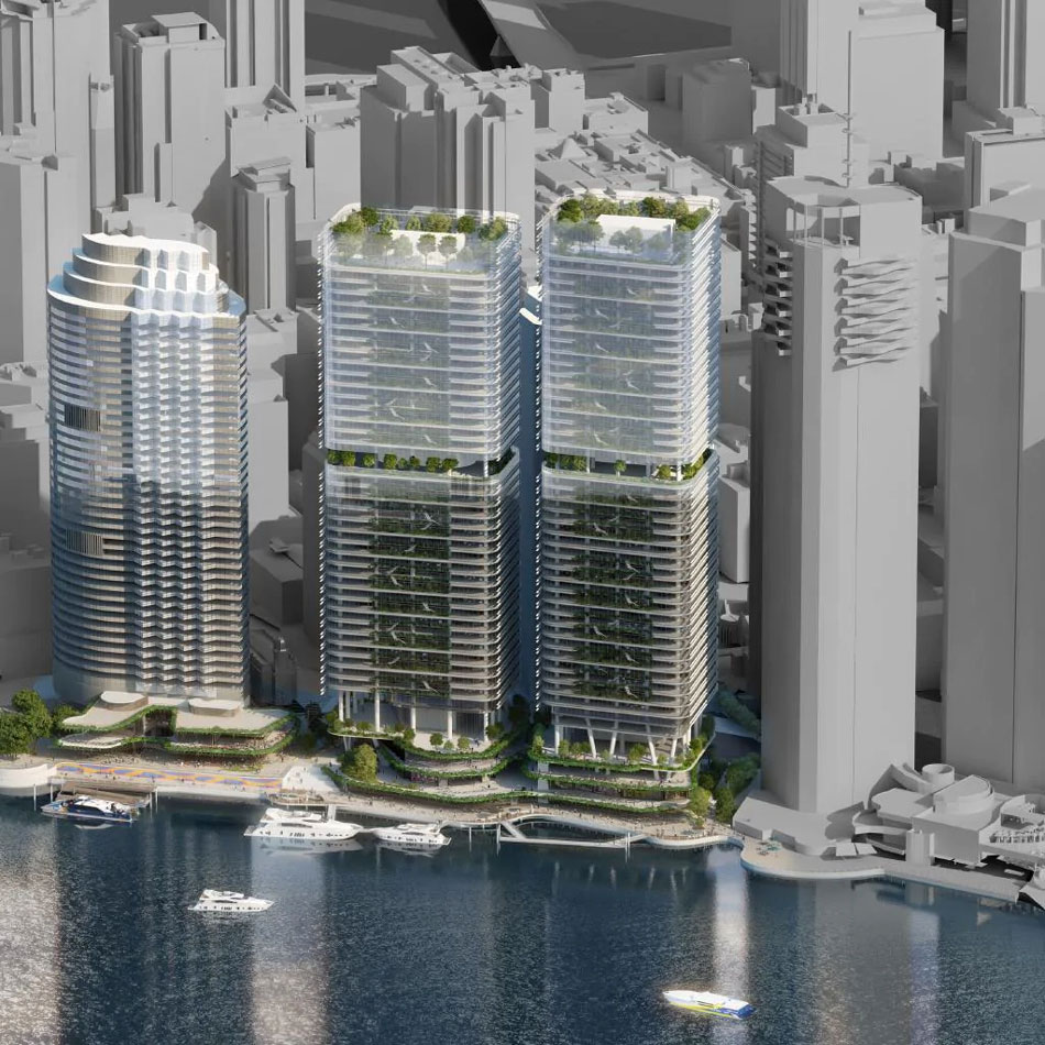 The Dexus group plans to demolish the 30-year-old pier buildings and construct two towers of 49 storeys and 43 storeys. Work on the massive mixed-use development, known as Waterfront Brisbane, is due to begin next year, with the first tower due to be standing by 2026.